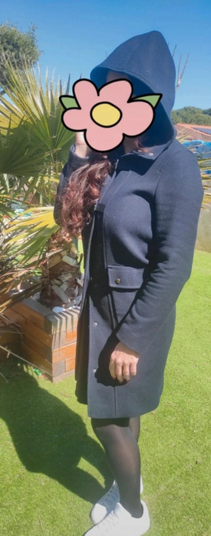 Sublime manteau chic veste élégante caban mi long Caroll XS bleu marine avec capuche neuf - photo numéro 2