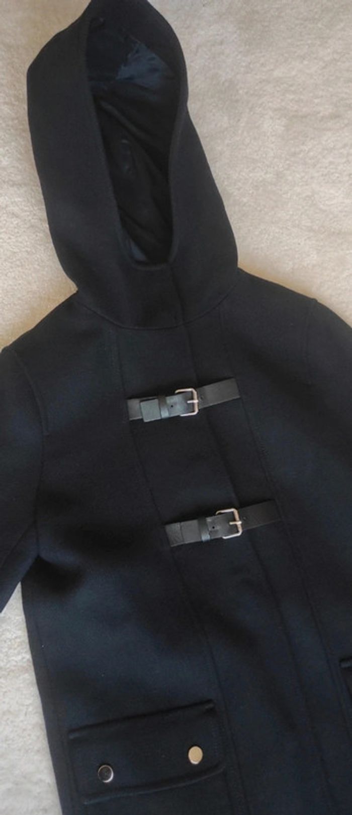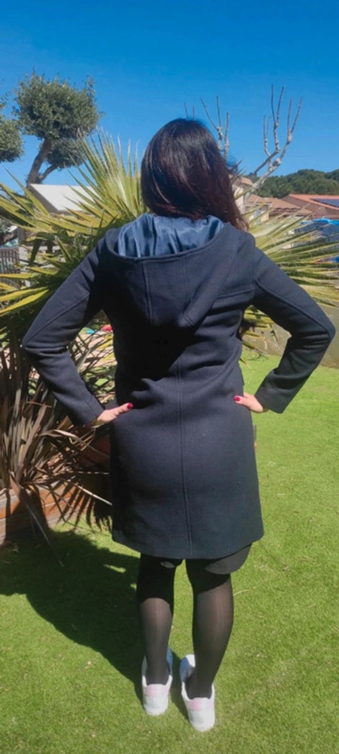 Sublime manteau chic veste élégante caban mi long Caroll XS bleu marine avec capuche neuf - photo numéro 7