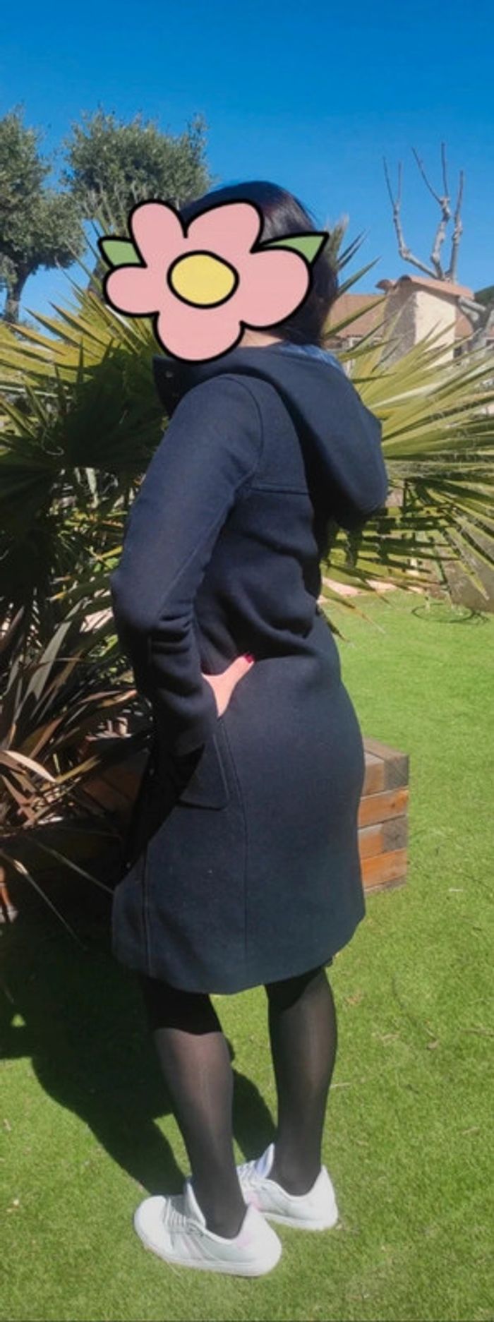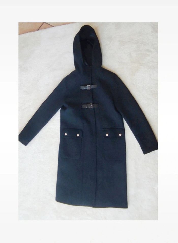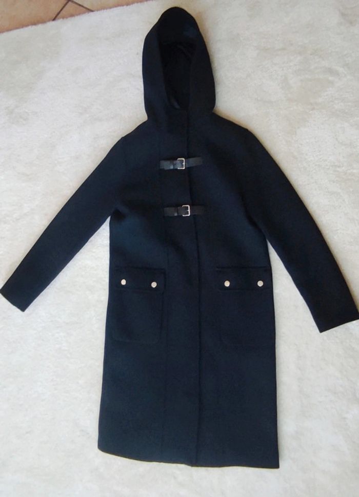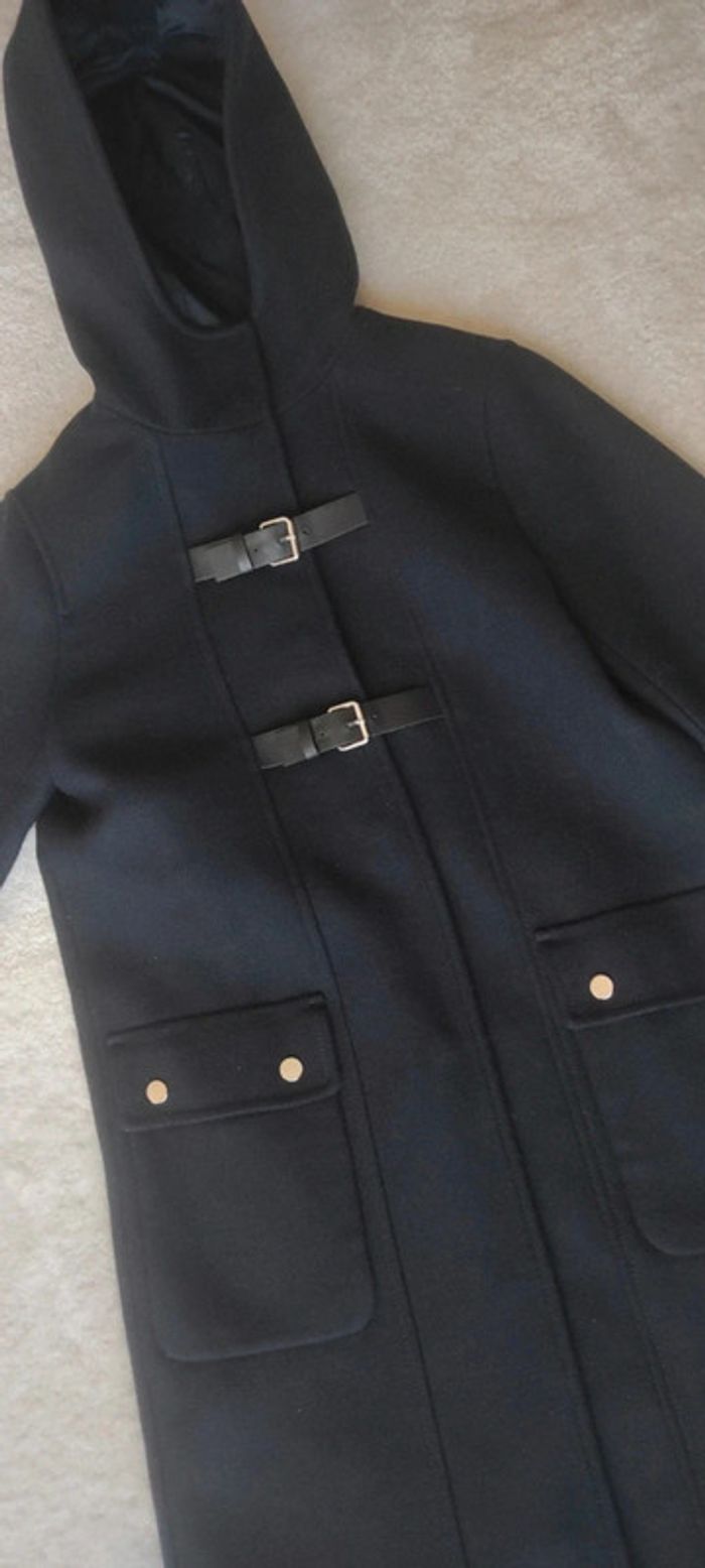 Sublime manteau chic veste élégante caban mi long Caroll XS bleu marine avec capuche neuf - photo numéro 3