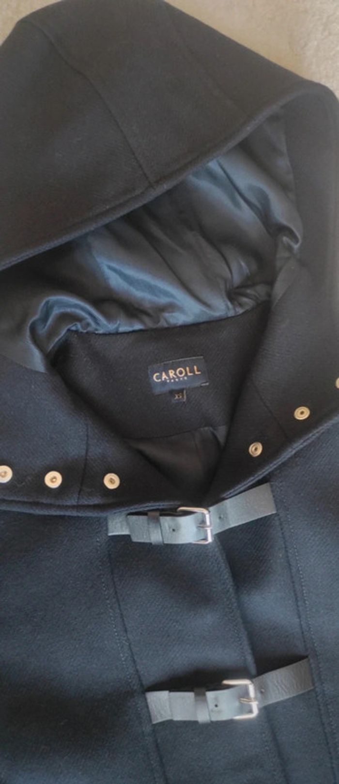 Sublime manteau chic veste élégante caban mi long Caroll XS bleu marine avec capuche neuf - photo numéro 8