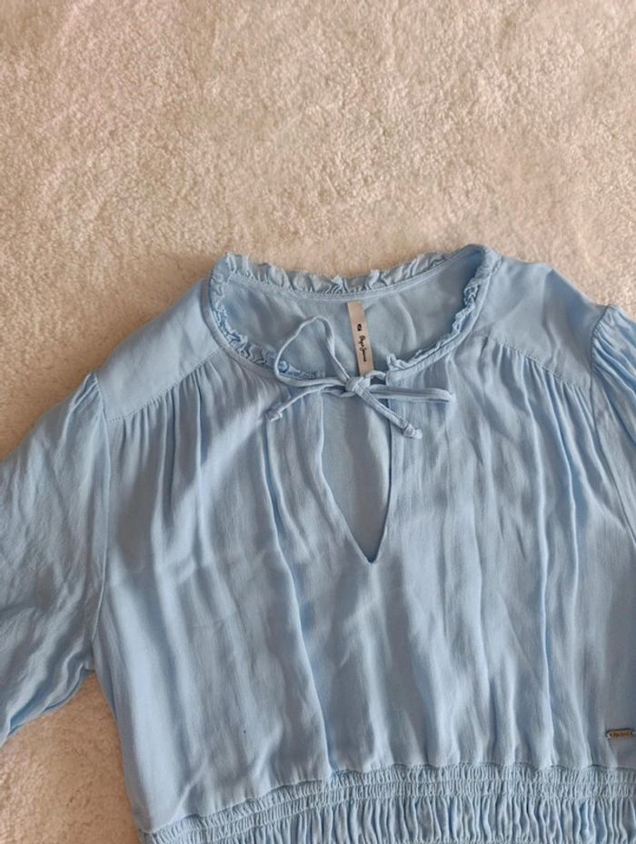 Robe bleu clair Pepe Jeans M légère, avec volants sur le bas - photo numéro 5