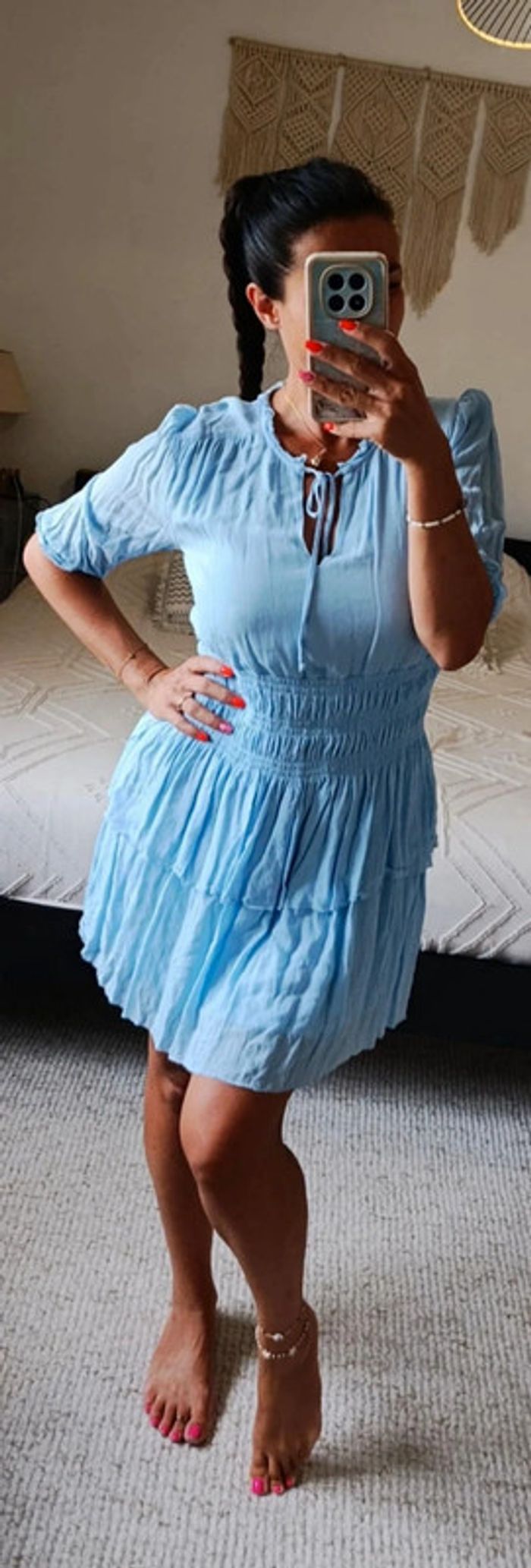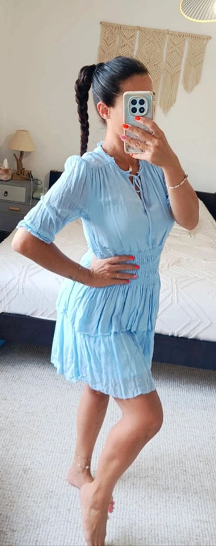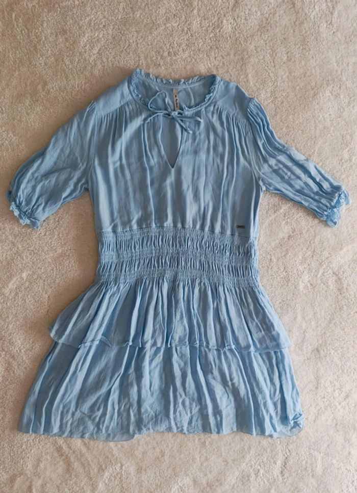 Robe bleu clair Pepe Jeans M légère, avec volants sur le bas - photo numéro 1