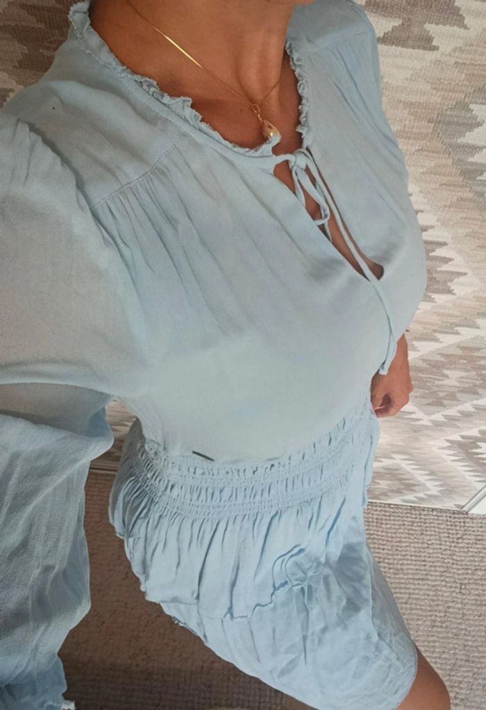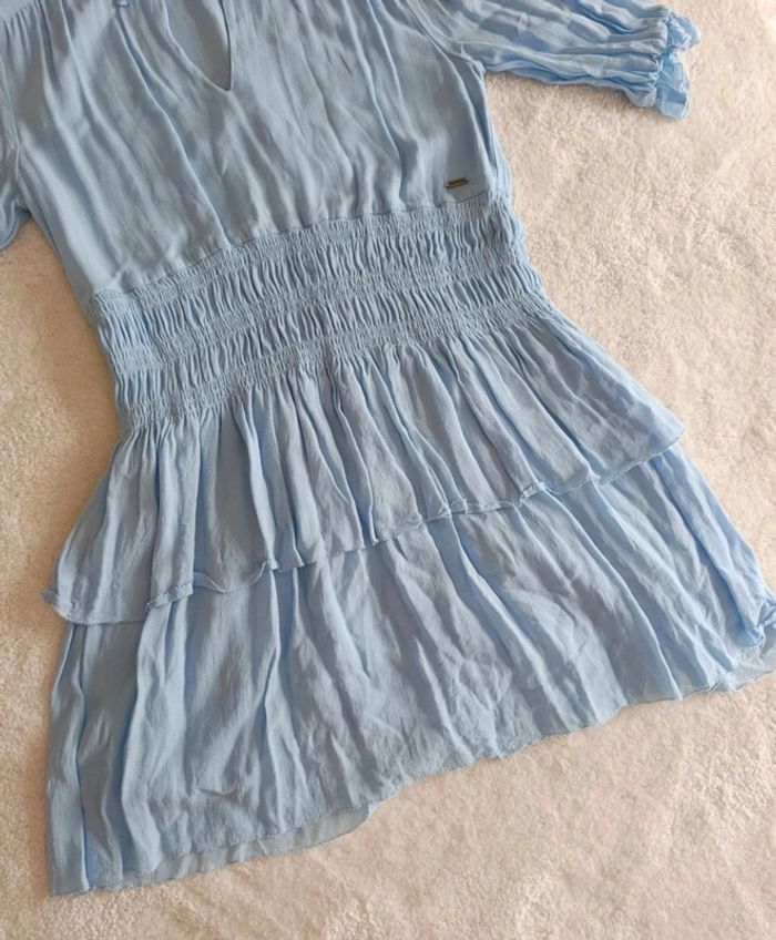 Robe bleu clair Pepe Jeans M légère, avec volants sur le bas - photo numéro 2