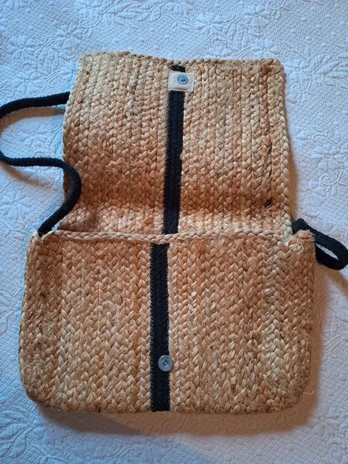 38x25 ( dimensions sac fermé) 100 pour cent jute Bohème à souhait En très bon état, 1 endroit sur le devant où le jute se détend un peu mais vraiment peu visible , voir derrière photo Je préfère quand même le signaler Consulter mes autres annonces pour composer des lots et faire des économies