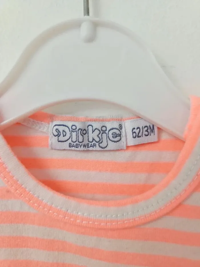 Beau T-shirt rayé blanc et orange sans manches, marque Dirkje, taille 3 mois. Article neuf: lavé mais non porté. Pour limiter les frais pensez à faire un lot en suivant le lien (Bien enlever vos filtres avant): #luckyckyfille3mois