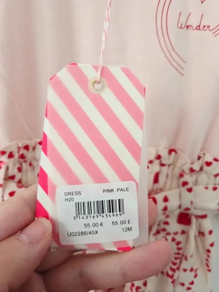 Superbe robe 👗 à manches longues, marque Billieblush, taille 12 mois. Coloris rose pâle avec motifs cœurs 💕 rouges. Avec ceinture à nouer. Neuve avec étiquette. Achetée 55€. Pour limiter les frais pensez à faire un lot en suivant le lien (Bien enlever vos filtres avant): #luckyckyfille12mois