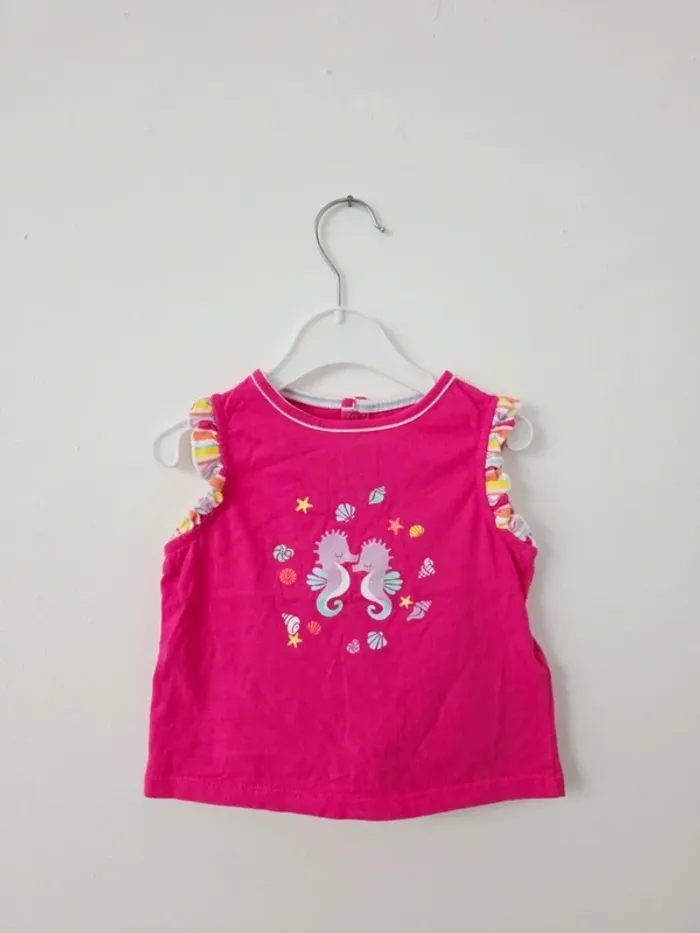 Beau débardeur rose, marque Sergent Major, taille 9 mois. Motifs hippocampe et coquillages 🐚 Article neuf: lavé mais non porté. Pour limiter les frais pensez à faire un lot en suivant le lien (Bien enlever vos filtres avant): #luckyckyfille9mois