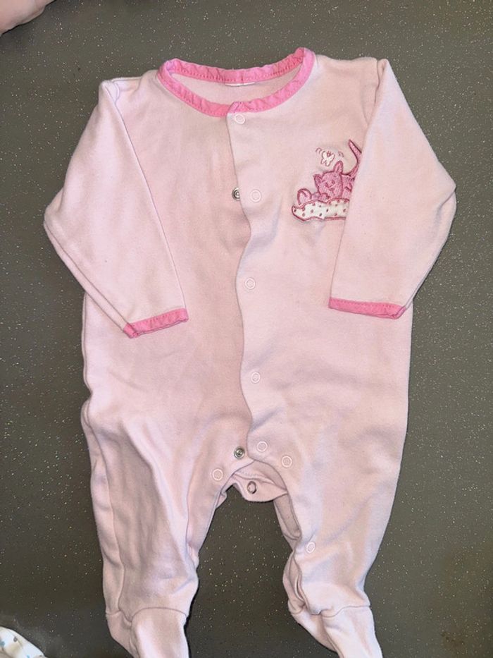Lot de 3 pyjamas coton, très bon état. Taille 3 mois. 100% coton. 2 avec ouverture devant. 1 pyjama blanc Kiabi 1 pyjama tex rose à pois 1 pyjama rose motif chat #jamaub3moisfille #lotpyjama3mois
