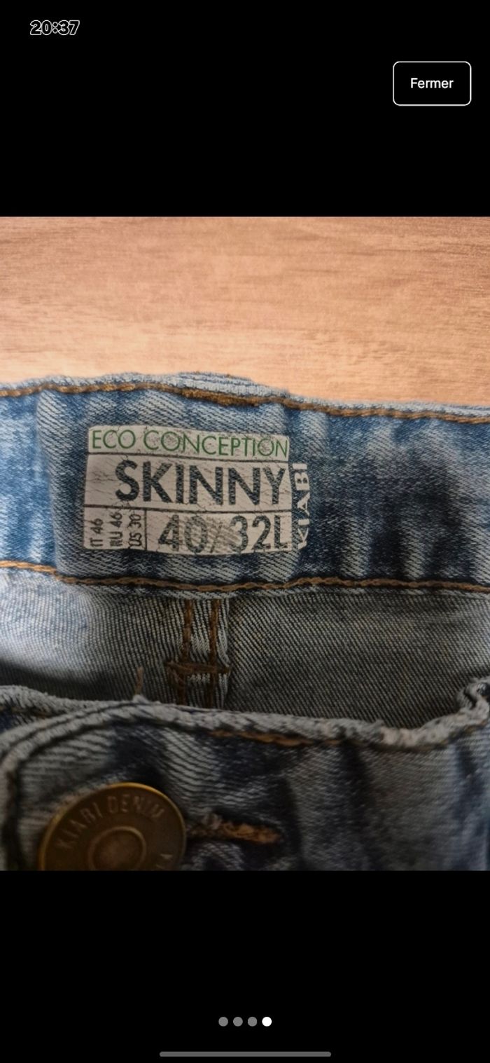 Taille 40 Skinny Kiabi Tres bon état •Vêtements homme et femme disponible différente tailles ainsi que enfant garçon différente taille. •chaussures , maquillages.. divers articles disponibles dans mon dressing.