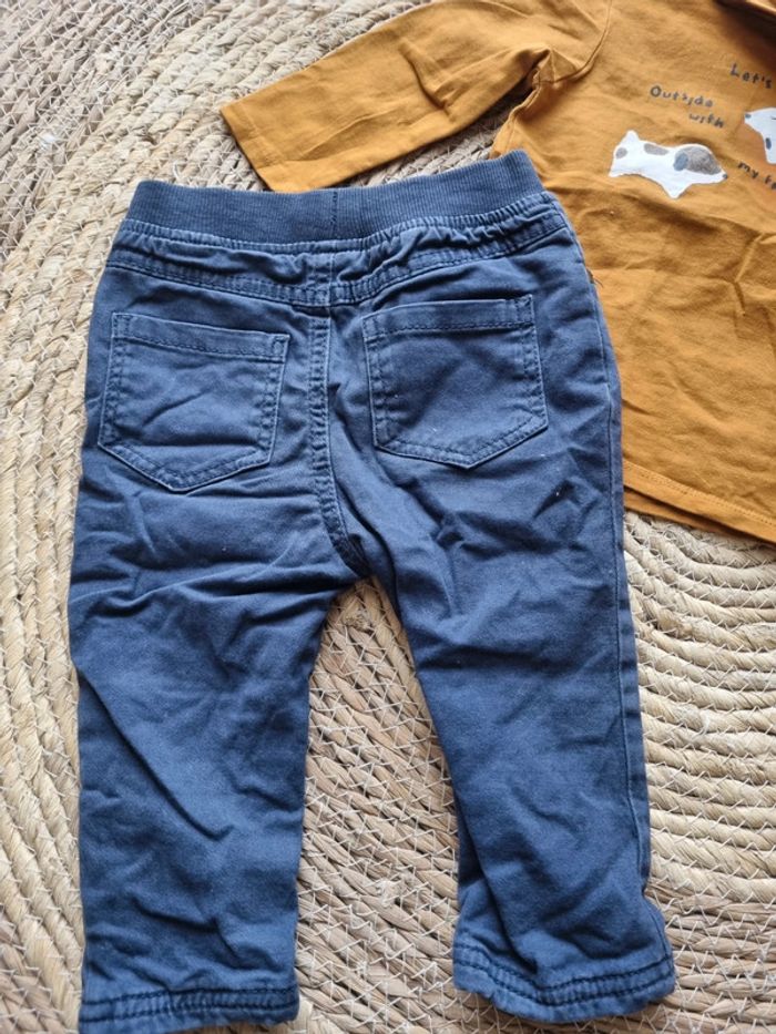 Ensemble bébé garçon 12mois. Sous pull kiabi couleur camel et pantalon mes petits cailloux bleu. Bon état, pas de tache ni de trou, seulement les genoux du pantalon un peu usé. Maison non fumeur. ❌️Pas de VintedGo. Dressing rangé ⬇️ #Mathildeprunier10garcon_12mois #bebegarcon #bebe12mois