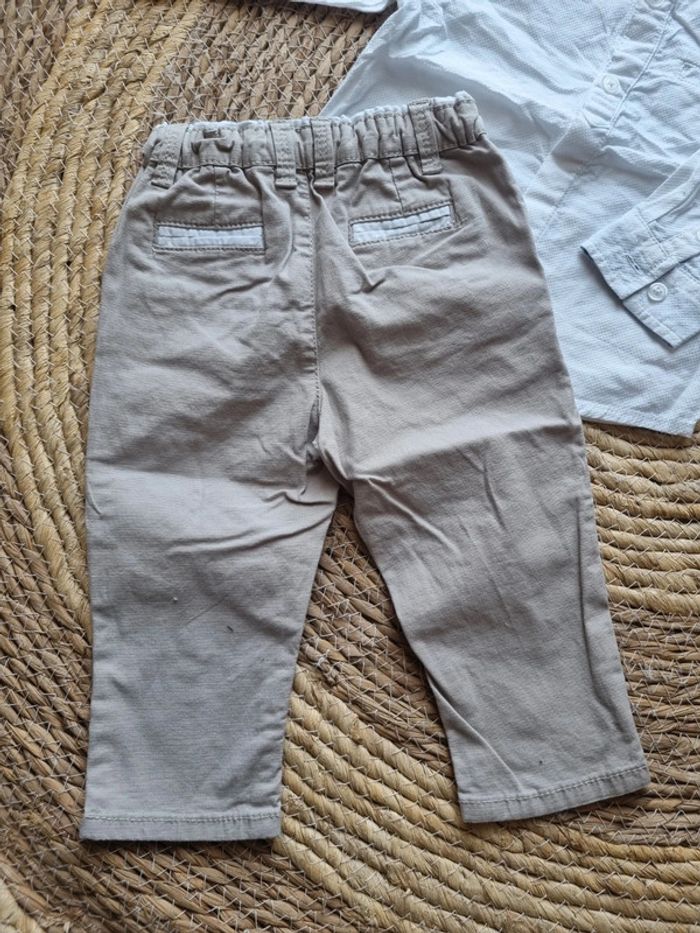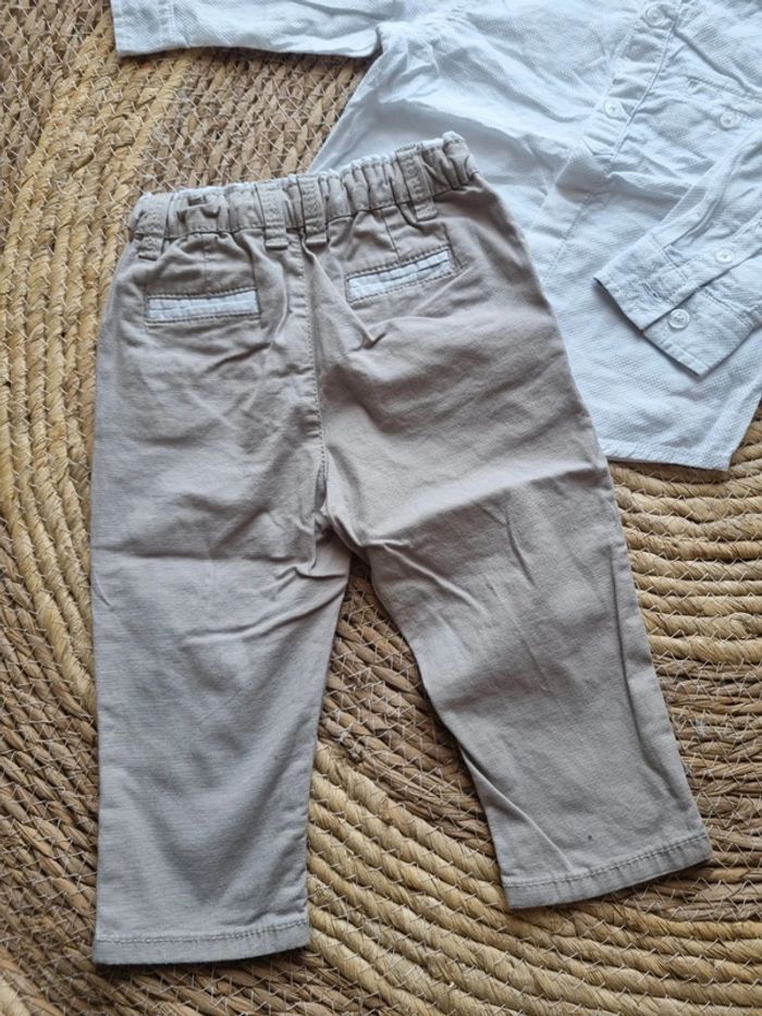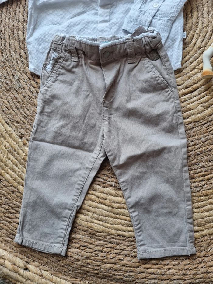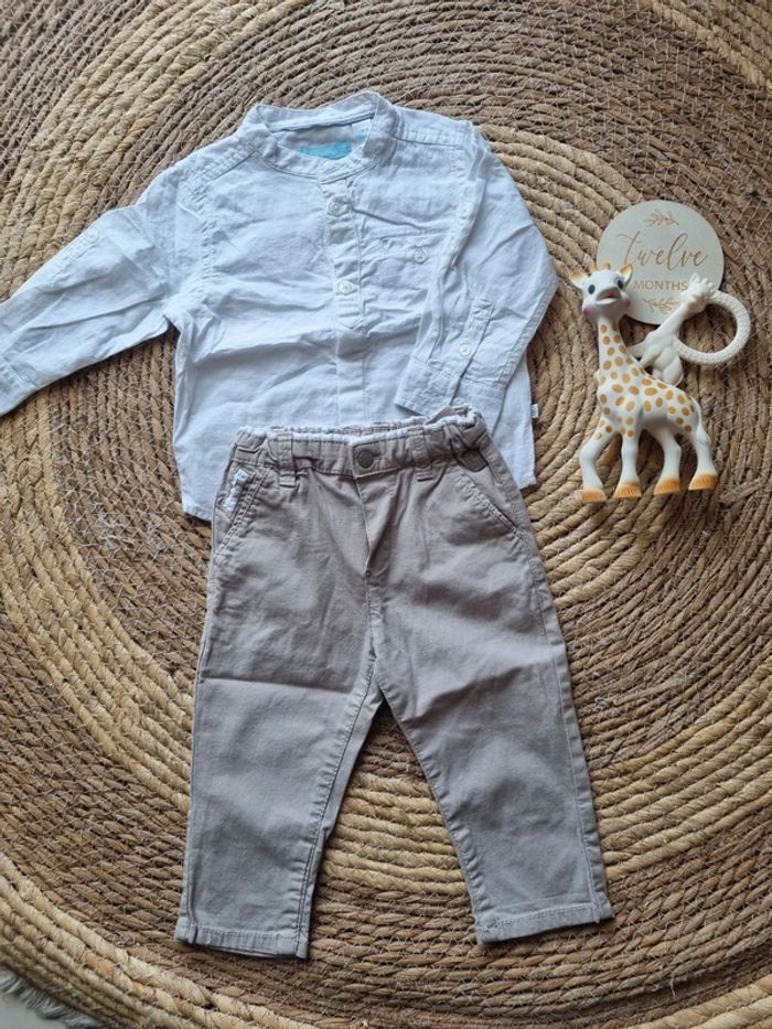 Ensemble obaidi garçon 12mois. Un pantalon taupe et une chemise blanche. Très bon état, pas de tache ni de trou. Maison non fumeur. ❌️Pas de VintedGo. Dressing rangé ⬇️ #Mathildeprunier10garcon_12mois #bebegarcon #bebe12mois