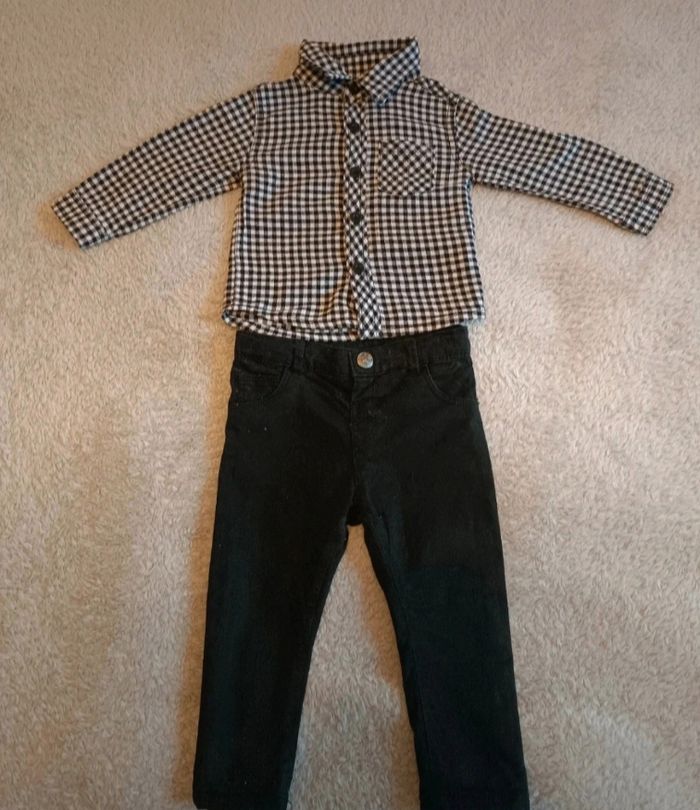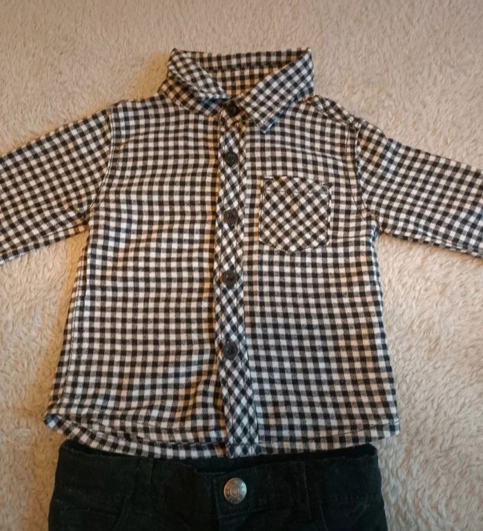 Ensemble garçon chemise à carreaux + pantalon noir 18 mois
