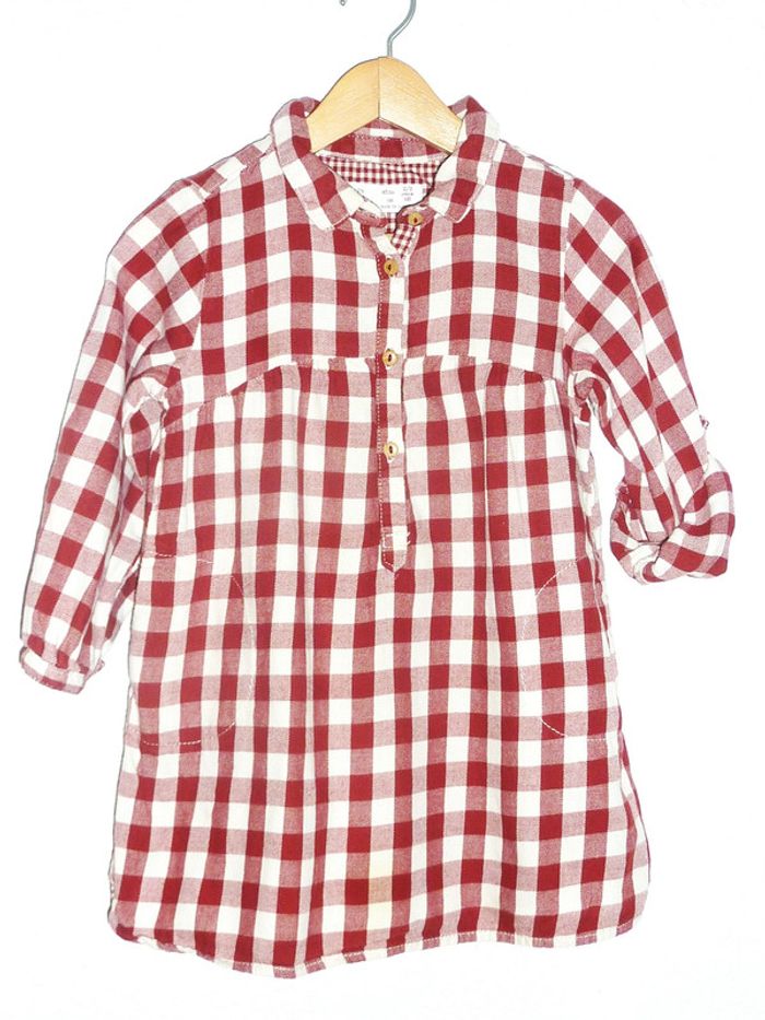 Pour voir mes annonces dans cette taille, tapez: #karinelillefille2ans #karinelillefille3ans Robe de marque Zara en très bon état, imprimé vichy crème et bordeaux, manches retroussables