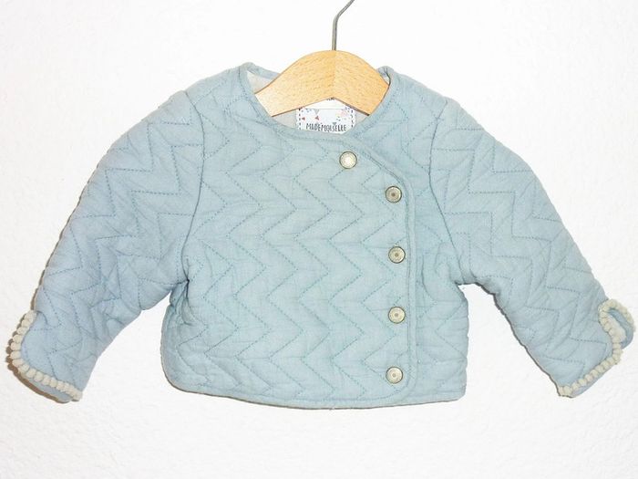Pour voir mes annonces, tapez #karinelillefille3mois Veste en molleton en parfait état couleur bleue nuage, ornée de jolis détails bohème