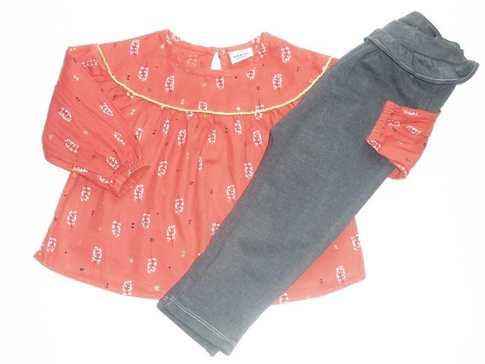 Autres annonces dans cette taille: #karinelillefille18mois Ensemble de marque TAO en excellent état, composé du sarouel couleur gris fumé, taille élastique ajustable et de la blouse couleur corail ornée d'un liseré doré et d'un imprimé fleuri blanc.
