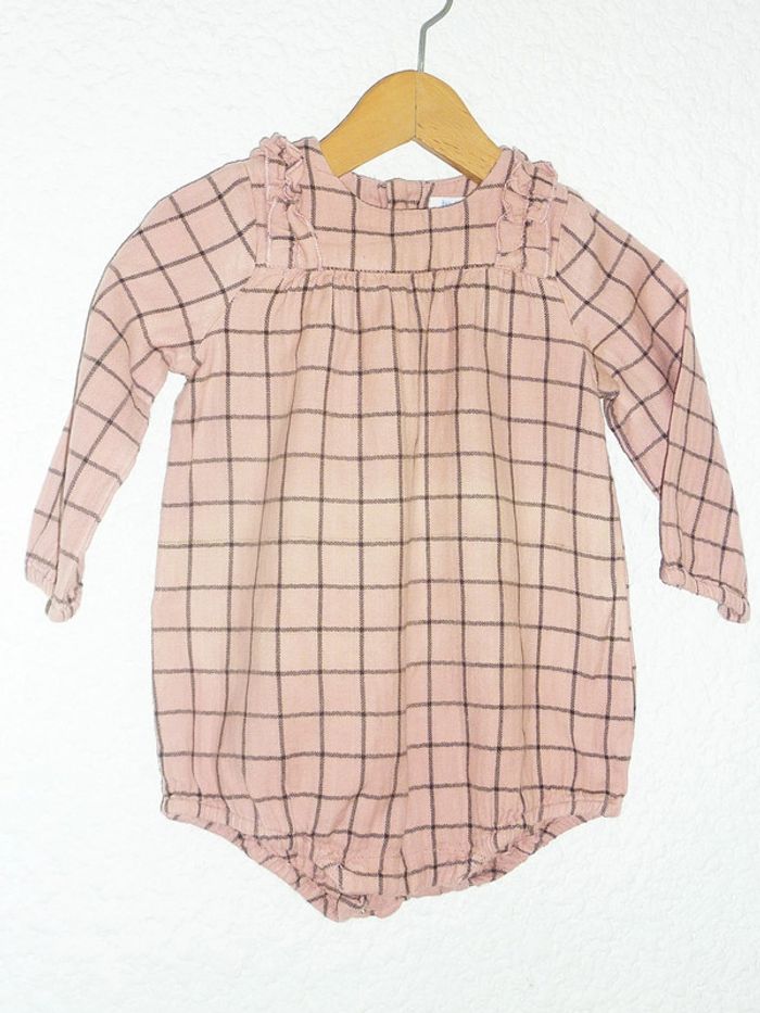 Pour voir mes annonces dans cette taille, tapez: #karinelillefille9mois Barboteuse en état excellent de marque BOUTCHOU imprimé à carreaux noirs sur fond rose