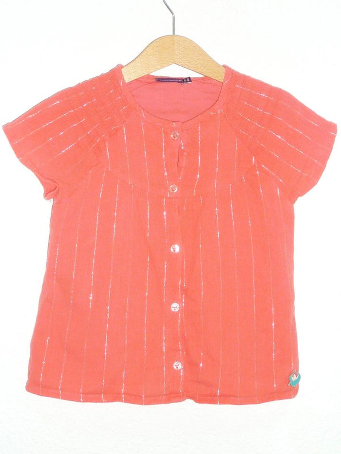 🏵️faites des lots🏵️ Pour voir mes annonces dans cette taille, tapez #karinelillefille5ans Blouse en tissu gaufré, lignes irisées sur fond couleur framboise, en parfait état.