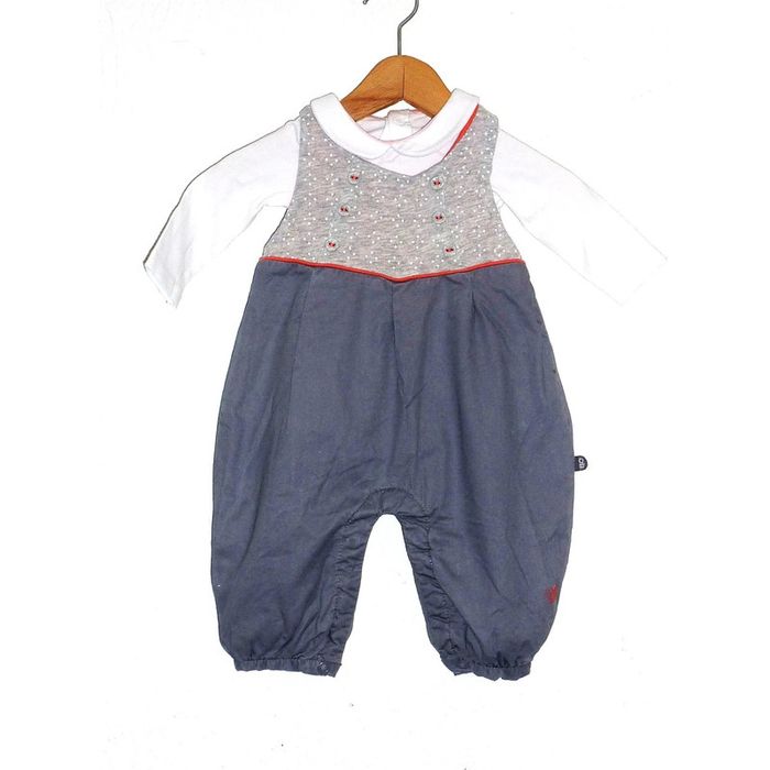 Autres vêtements 1 mois visibles en tapant: #karinelillefille1mois Dressing visible à côté de montpellier Ensemble de marque OBAIBI en excellent état, composé d'une salopette grise finement doublée grise avec un liseré corail et du body orné d'un petit col chic et d'un motif rose. L'indispensable du dressing de bébé.