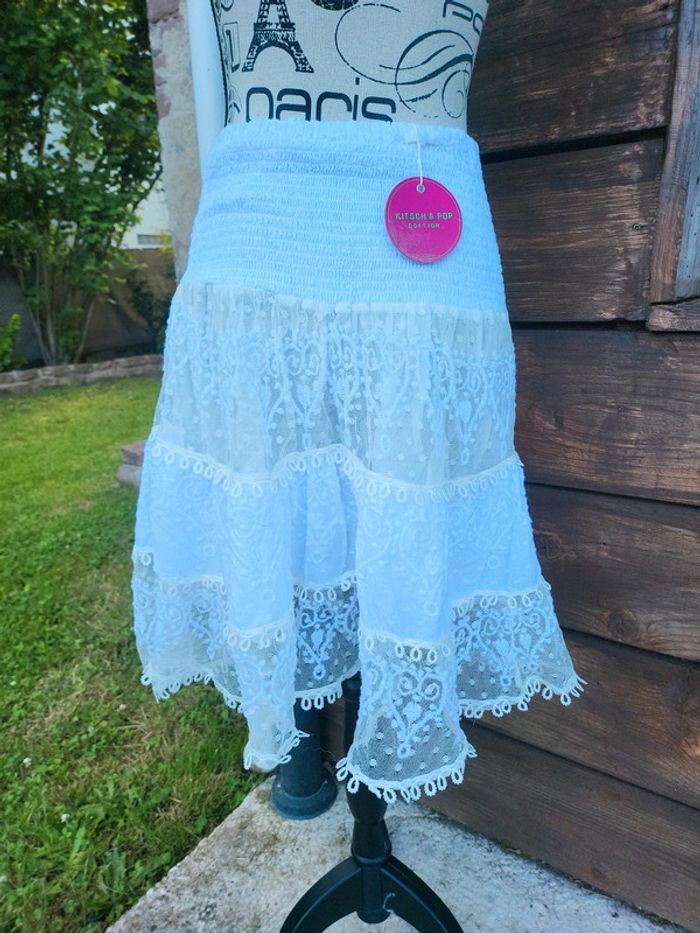 Magnifique jupe en dentelle Doublée Style hippie plage festival Taille M mais correspond à une taille S Longueur 52 cm Taille 34 cm (hyper élastique) Confection artisanale