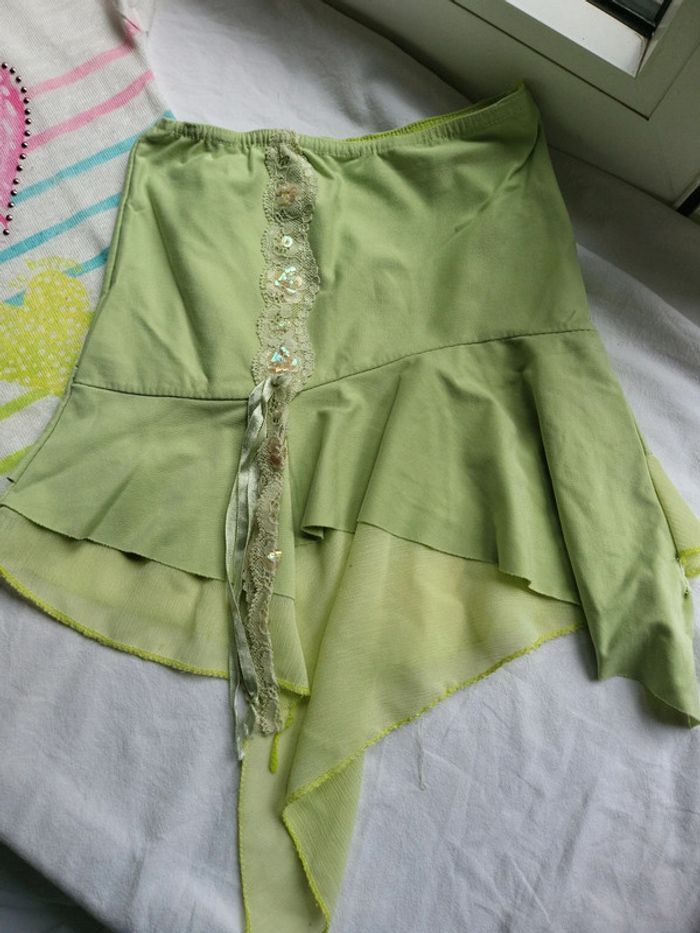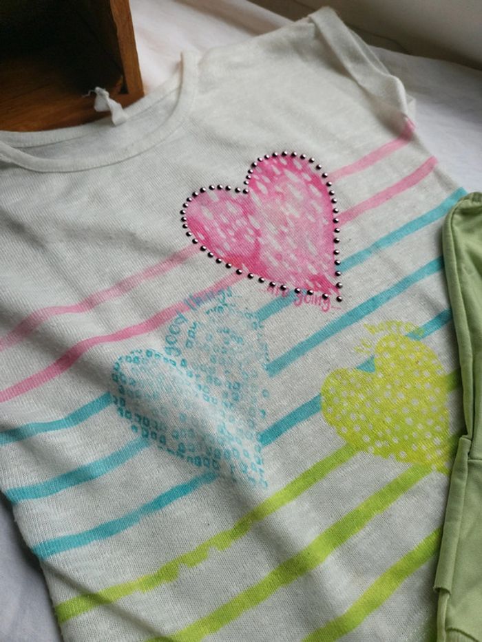 Ensemble trop mimi Jupe asymétrique avec perle et paillette T-shirt rayé avec cœur clouté 4 ans