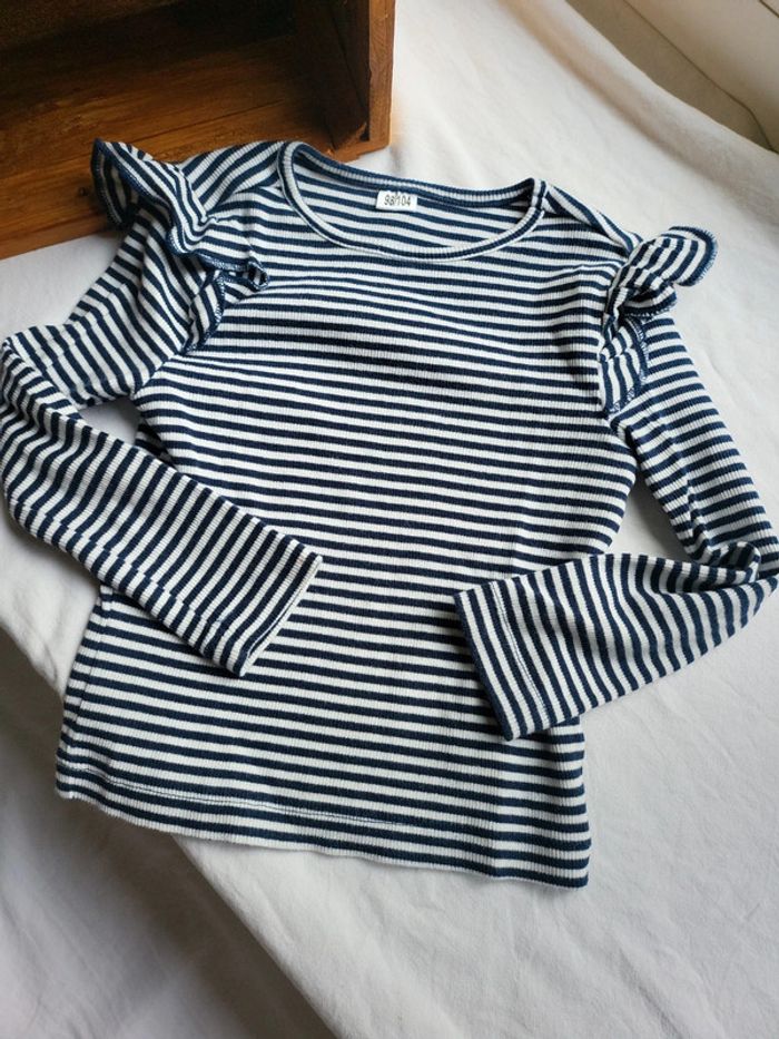 T-shirt mi saison rayé marin épaules volants 4 ans - photo numéro 1