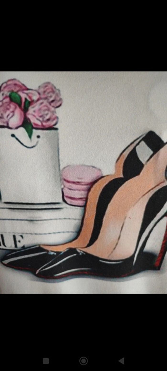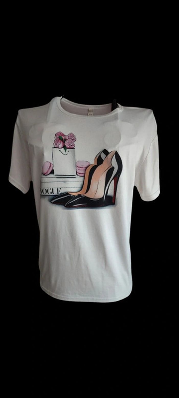 -Tee-shirt blanc motif escarpins et fleur Absence d'étiquette taille unique