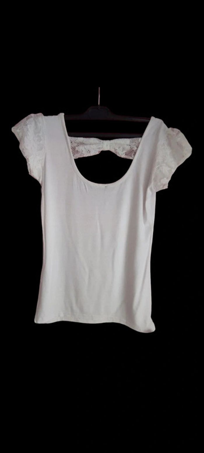 T-shirt blanc Broderie mancheset dos avec un nœud Jennyfer taille L