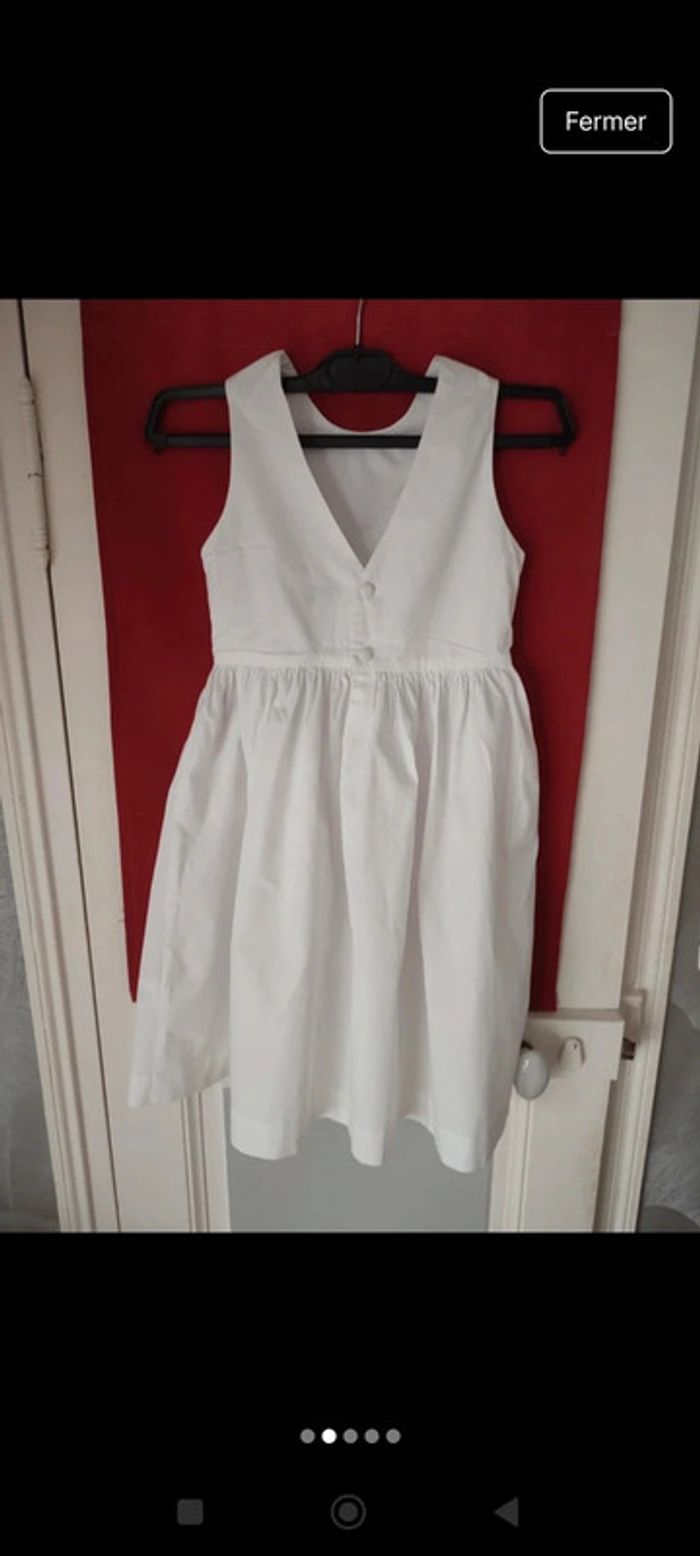 robe blanche de cérémonie blanche boutons dos,longeur sous le genou portée 1 fois pour un mariage Chic et Chou taille 8 ans