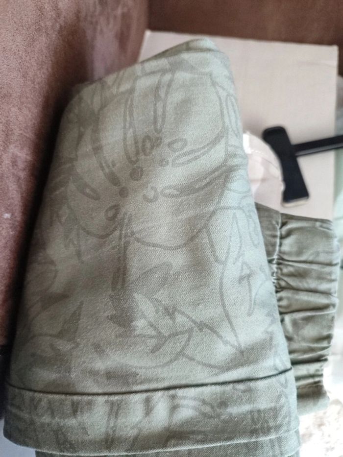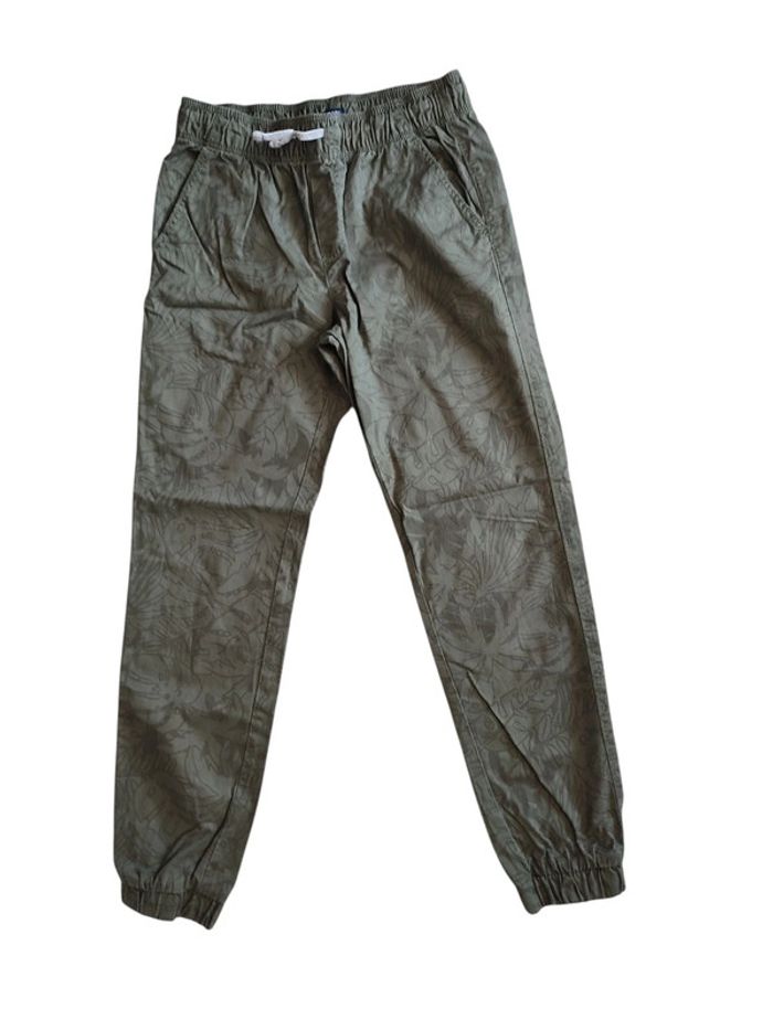 Pantalon kaki en toile motif feuillage Taille élastique avec lien resserré aux chevilles 100 % coton Kiabi taille 12 ans