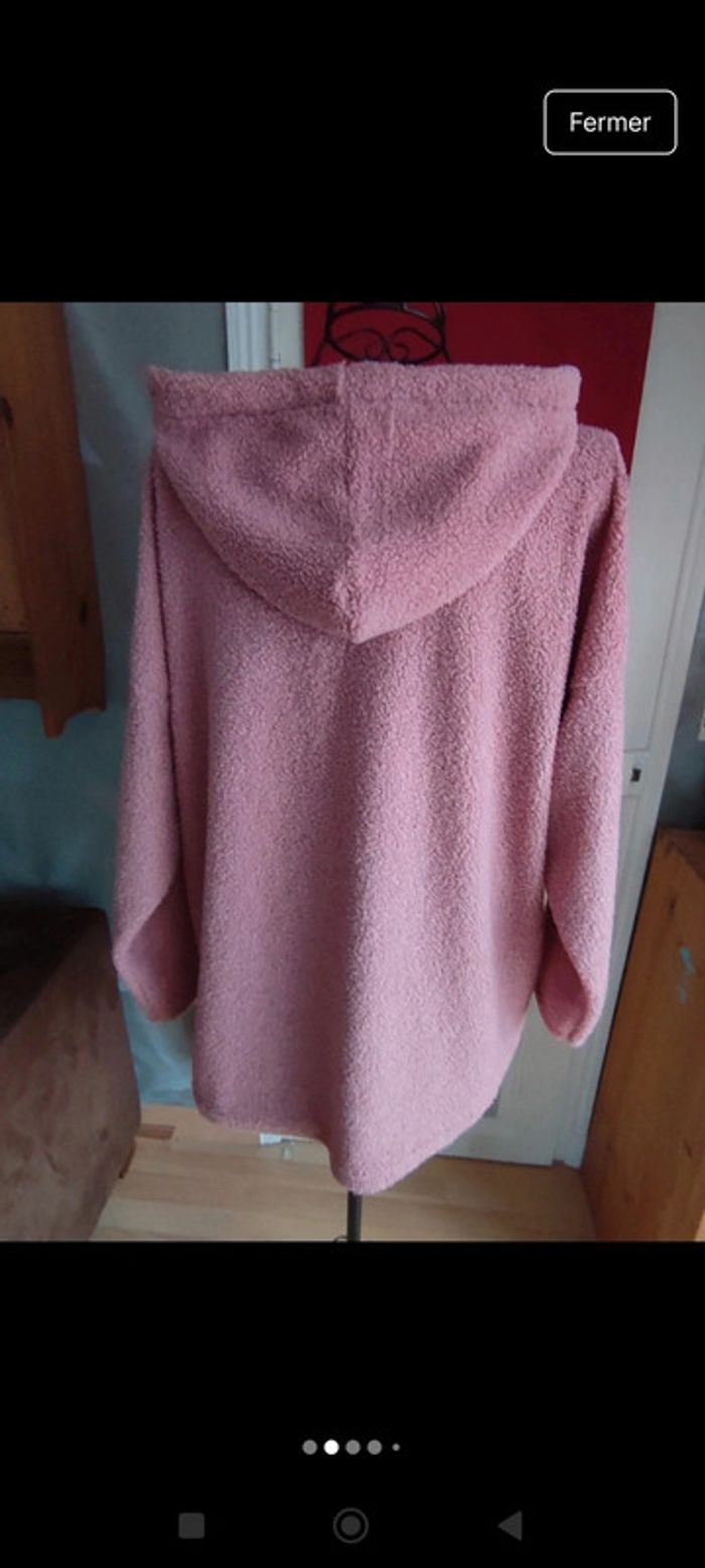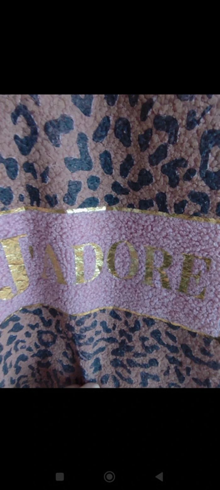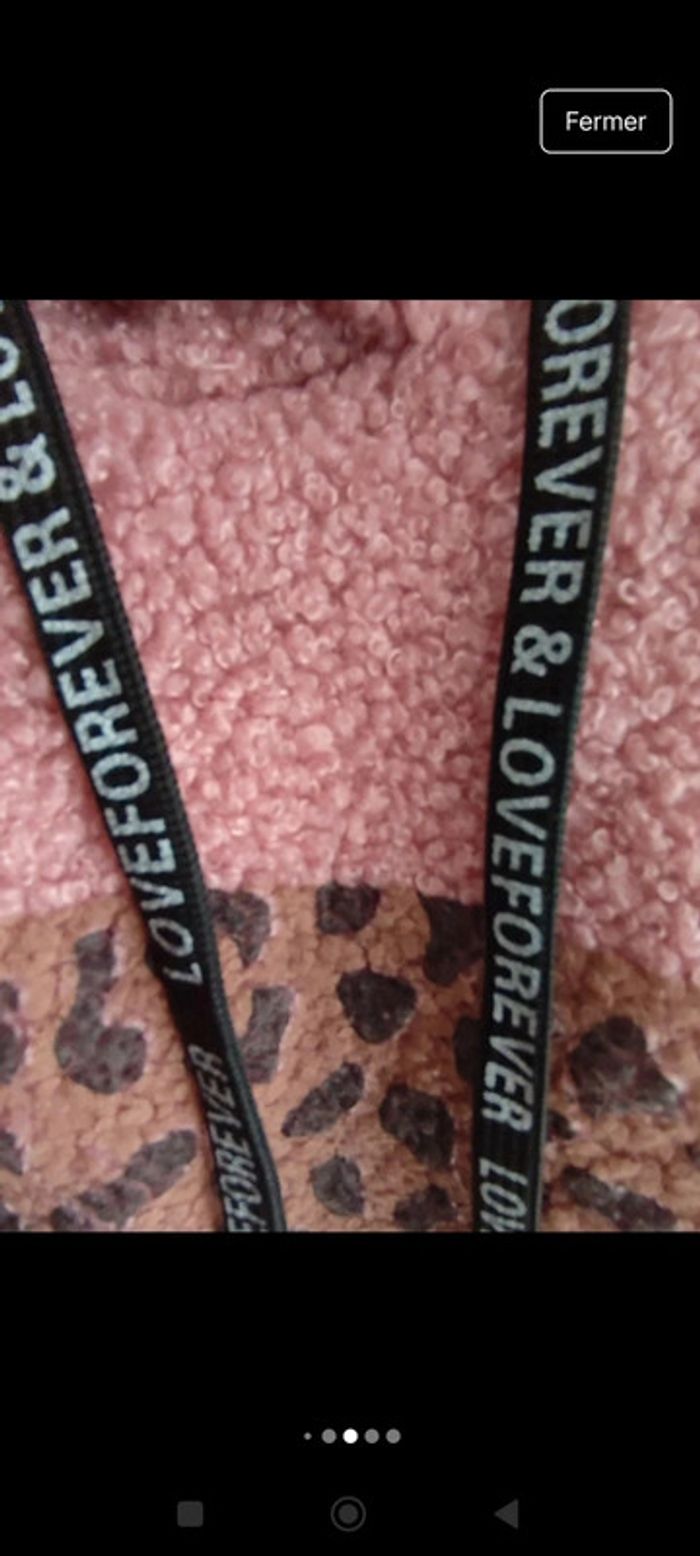 Pull vieux rose NEUF pilou-pilou inscription" j'adore"en doré sur fond léopard avec capuche et liens 95 % viscose 5 % élasthanne New collection taille unique (du 38 au 44)