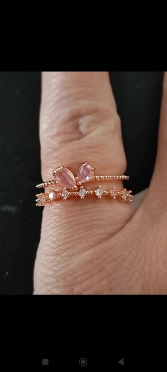 bague dorée double rang avec strass et pierre rose réglable Neuve acier inoxidable(ne bouge pas dans le temps) pensez à la Saint Valentin ❤️