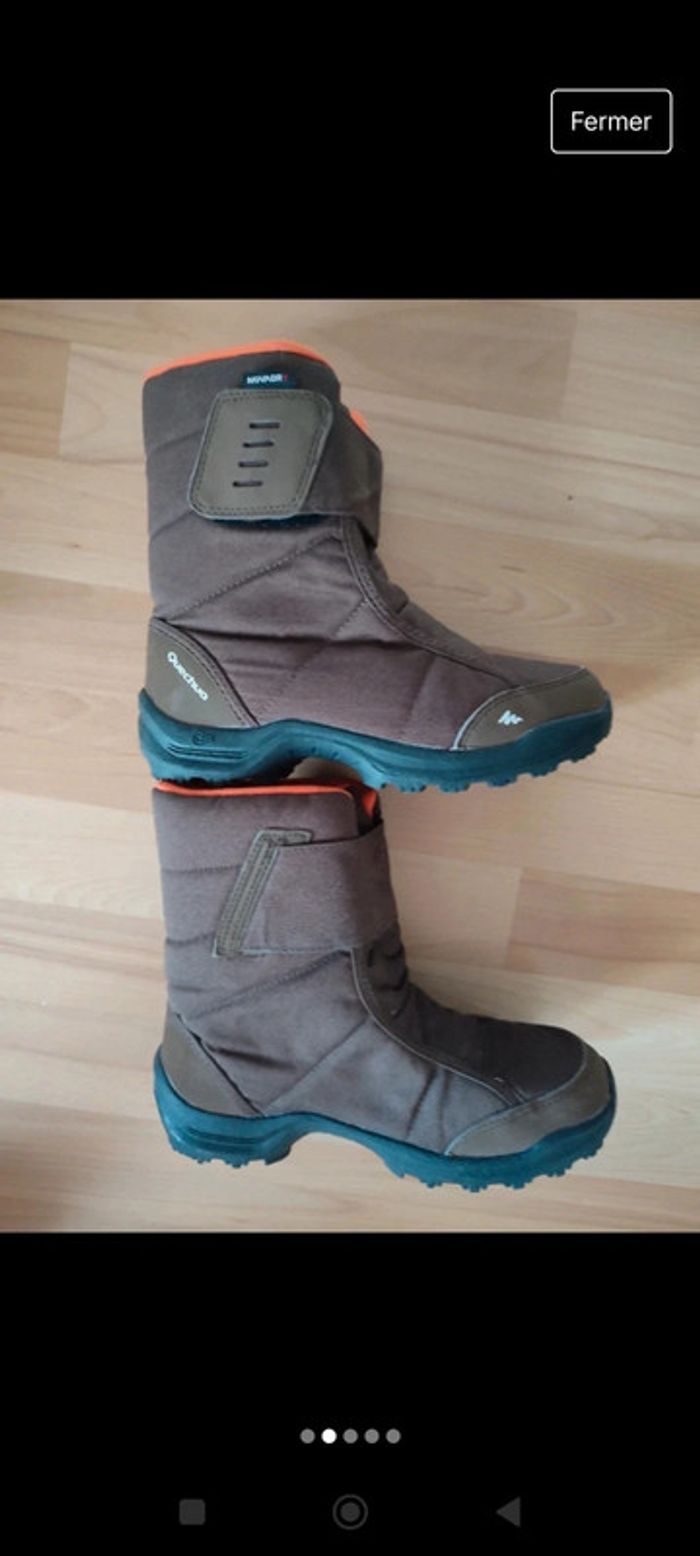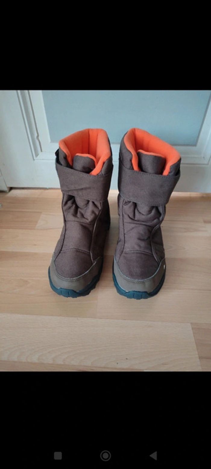 Bottes de ski marron intérieur orange fermeture par scratch Porter une semaine pour colonie Decathlon taille 36