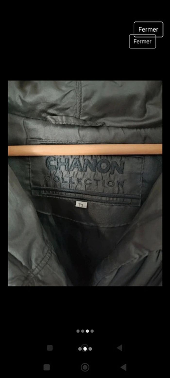 Doudoune noire, longueur genou Capuche cachée dans le colis Longueur 84 cm fermeture eclaire+pressions 60% polyamide 40% polyester Chanon collection Taille 3