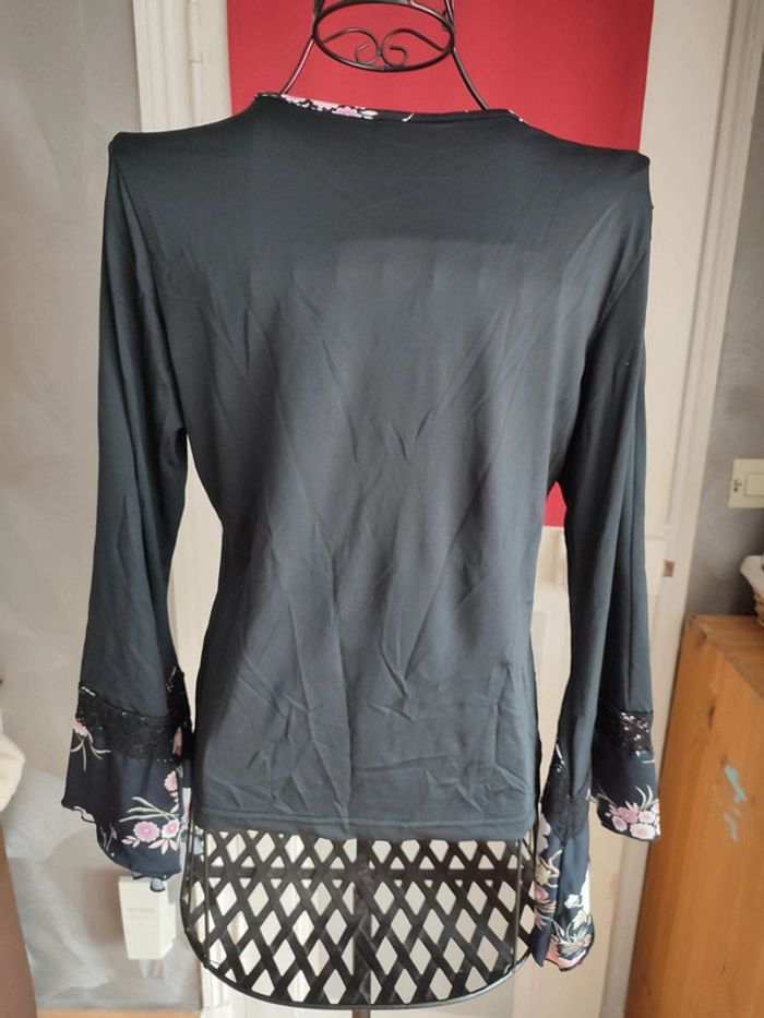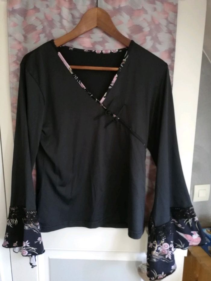Tee shirt chinois ,tissu léger manches longues plus large au niveau des poignets avec 2 boutons taille 38/40
