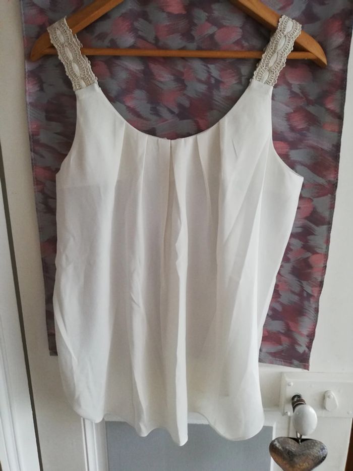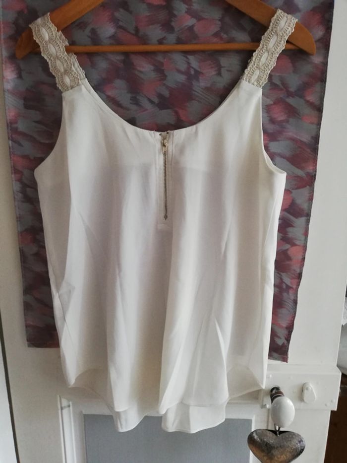 Top crème à bretrelles brodées dorées Fermeture éclair dans le dos 100 % polyster Grâce & Mila Taille L