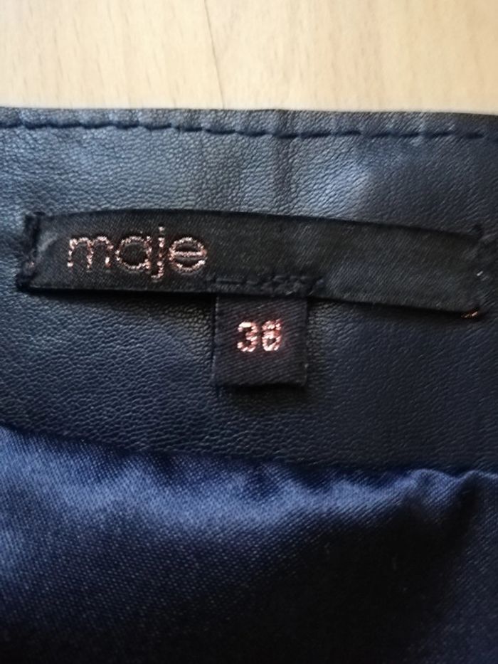 Jupe cuir Maje bleu marine 2 poches Fermeture éclair intégrale sur le côté droit Taille 38 100% agneau