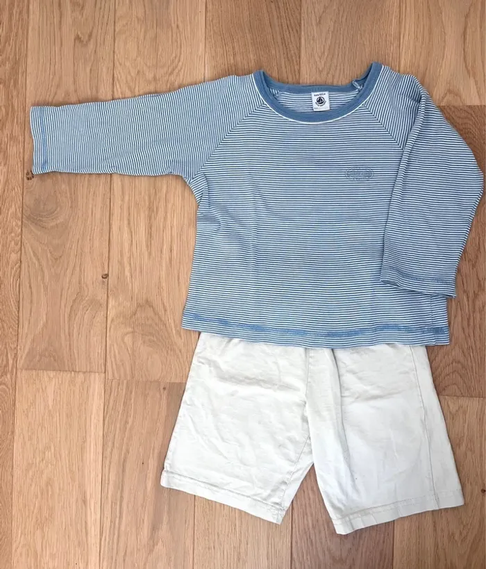 Haut de pyjama milleraies Petit Bateau parfait état Le bas est offert. C’est un short Verbaudet en très bon état malgré quelques traces propres Pour voir mes autres articles en 4 ans : #felaxda4ans
