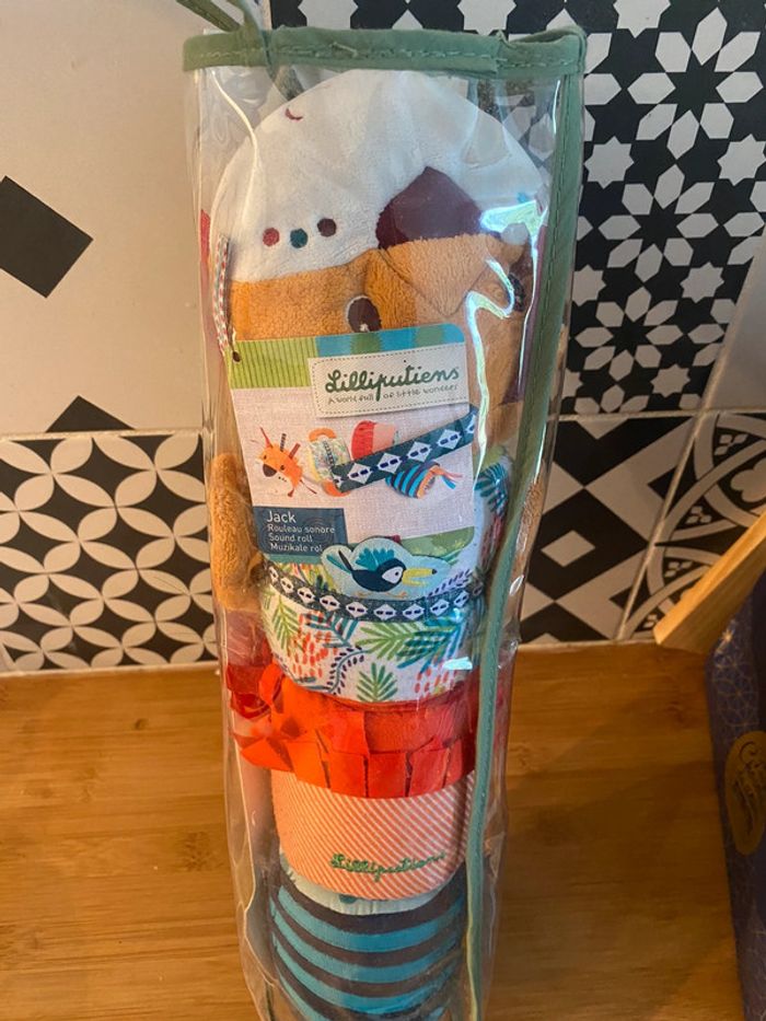 ⚠️ envoi uniquement mondial relay Avec sac et étiquettes d’origine. Des bouloches sur les éléments après lavage. Jack rouleau sonore - Lilliputiens Quatre hochets en un ! Chaque partie du corps de Jack produit un son différent et est une vraie source de découverte pour les bébés. Les différentes parties se fixent ensemble grâce à une attache velcros, les enfants peuvent jouer individuellement avec chaque hochet, ou avec l'ensemble des 4 parties attachées. Un superbe jeu d'éveil et une vraie source de découverte pour les bébés. Prix magasin : entre 35 et 40€