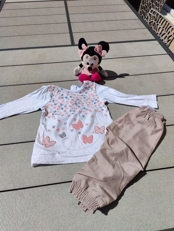 Ensemble fille blanc et beige 18 mois