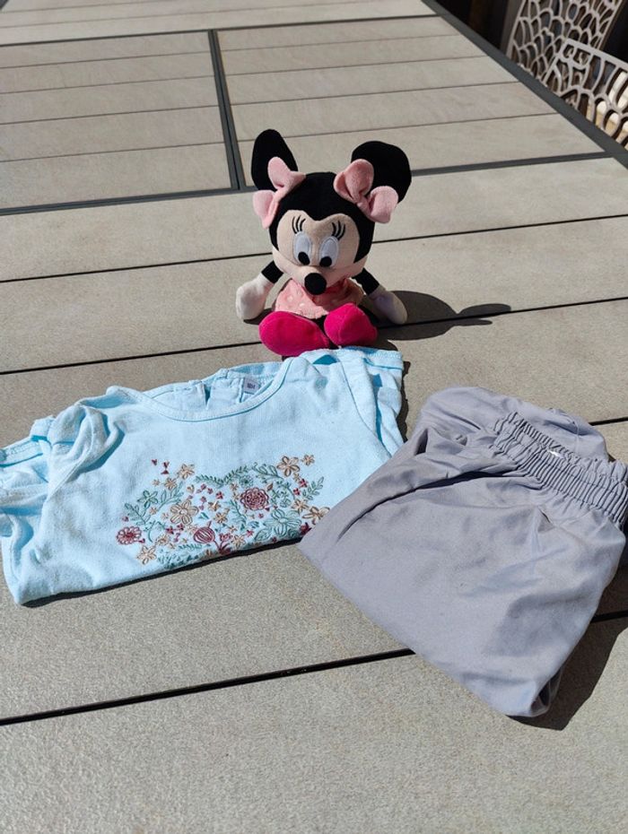 Ensemble fille bleu et gris 18 mois