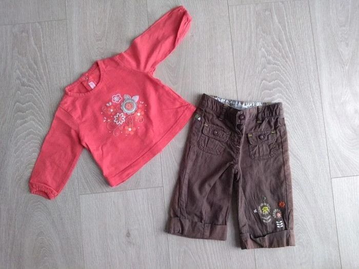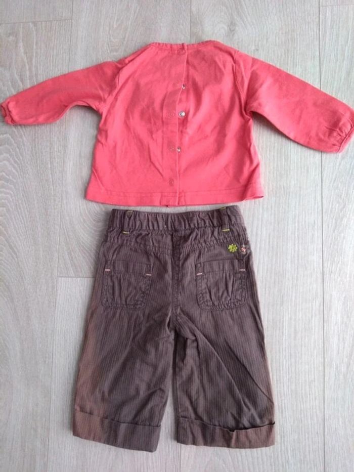 Tee shirt manches longues orange en parfait état, pantalon marron délavé en bas des jambes (voir photo 3) #lolamalo50bebefille3mois #lolamalo50bebefille