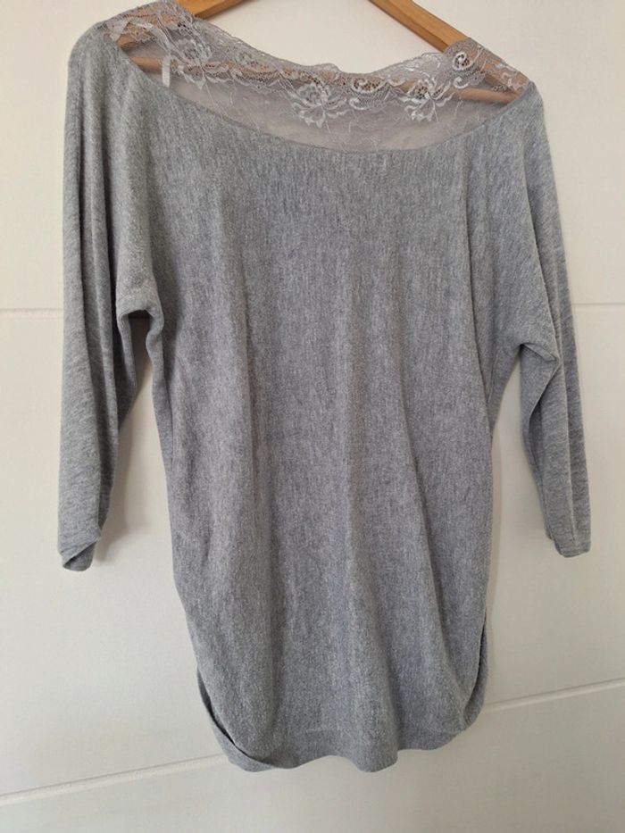 Pull LPB Woman gris dentelle Manches 3/4 #lolamalo50femme36