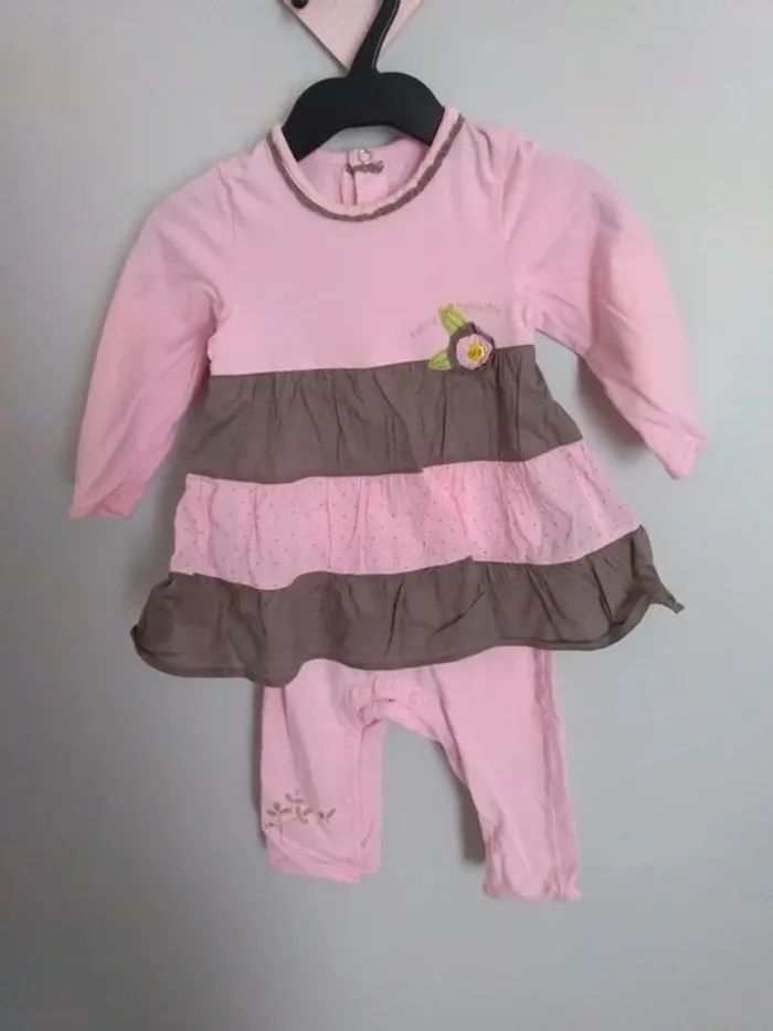 Jolie combinaison rose et taupe avec pois Taille 12 mois #lolamalo50bebefille12mois