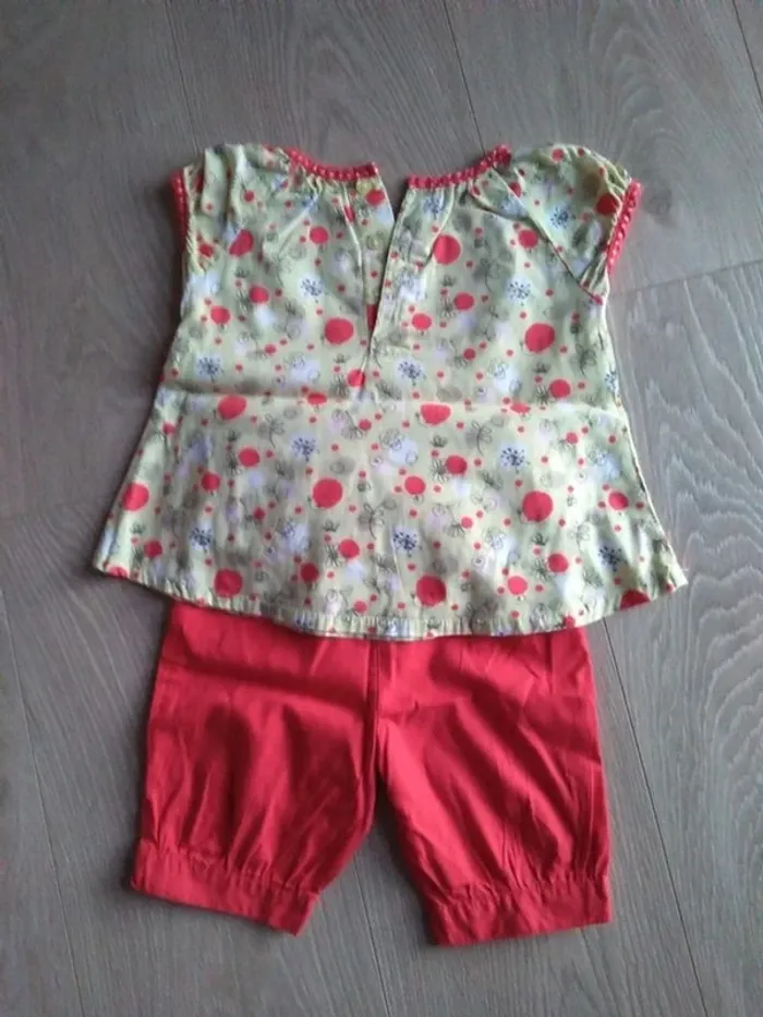 Ensemble blouse et pantacourt vert et rouge 12 mois