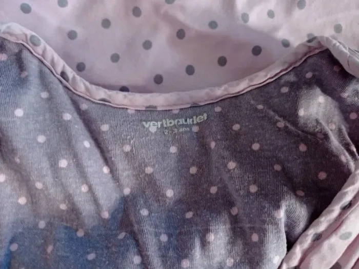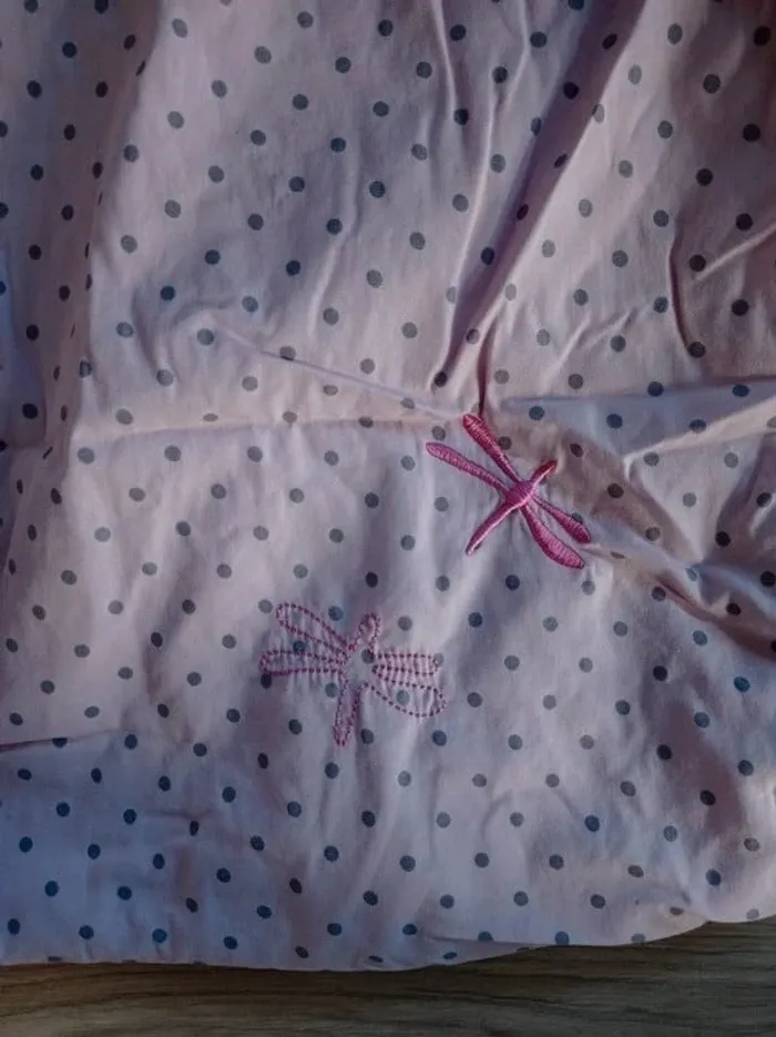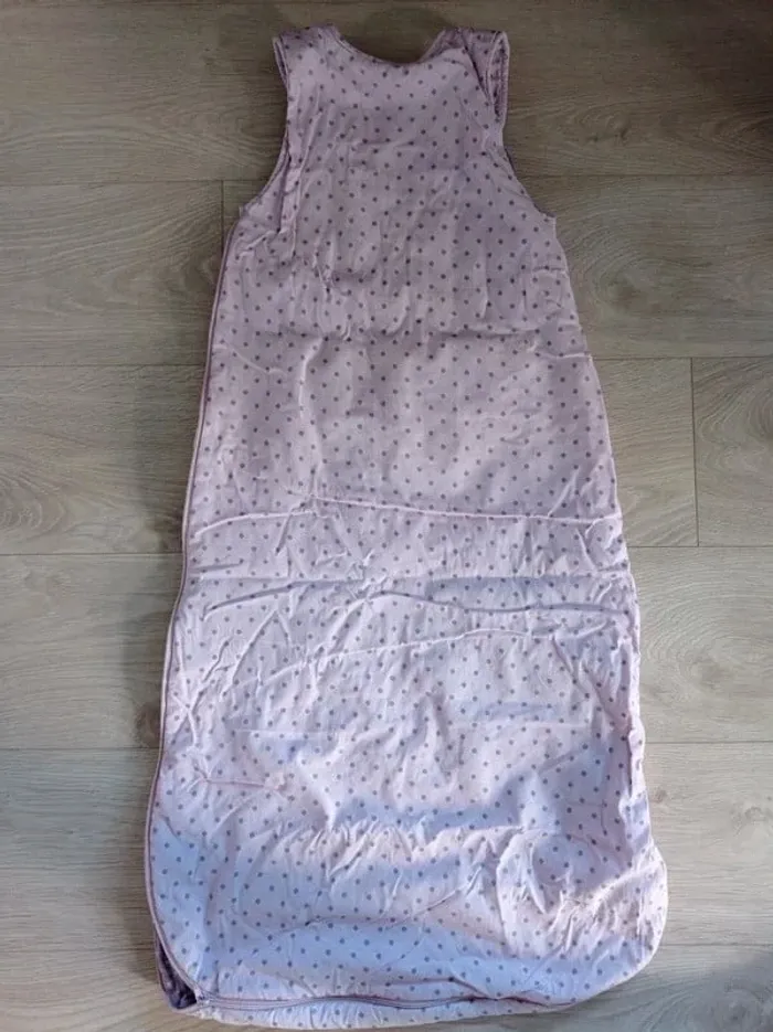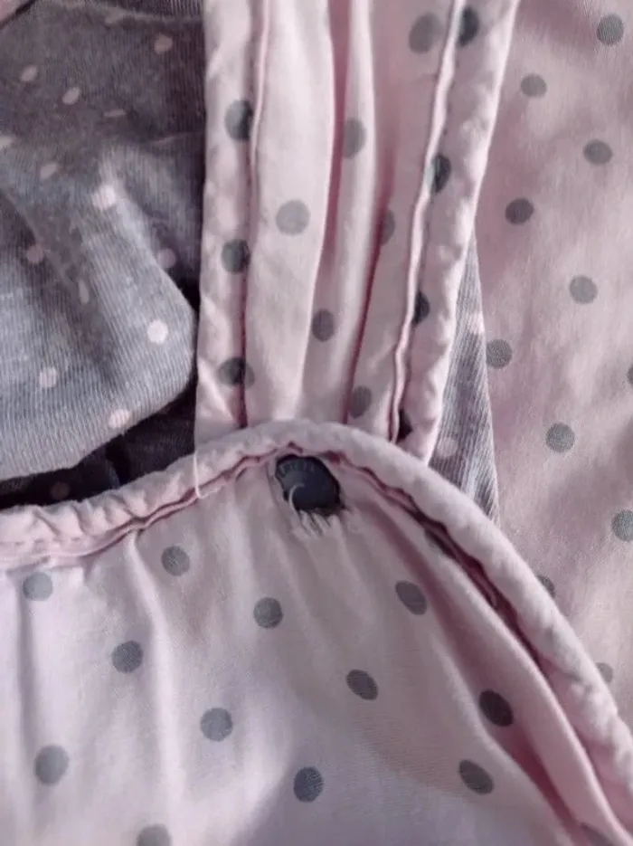 Gigoteuse rose avec pois violet 105 cm Défaut autour du bouton pression gauche(voir photo 6) #lolamalo50accessoirebebe #lolamalo50fille2ans #lolamalo50fille3ans