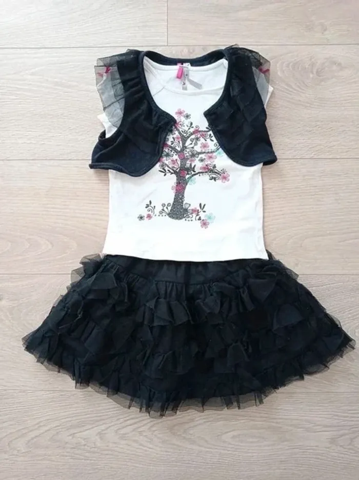 Jupe noire en tulle avec boléro et tee shirt à manches courtes #lolamalo50fille2ans