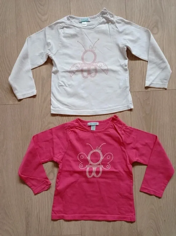 Lot de 2 tee-shirt rose et blanc Obaïbi 23 mois - photo numéro 1