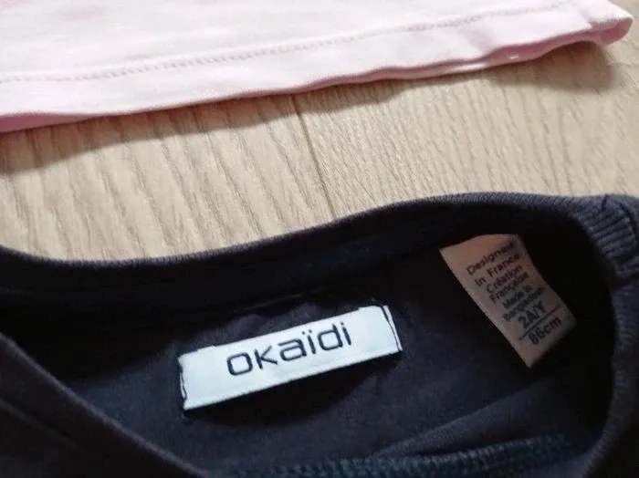 Lot de tee- shirt uni bleu marine et rose poudré Okaïdi 2 ans