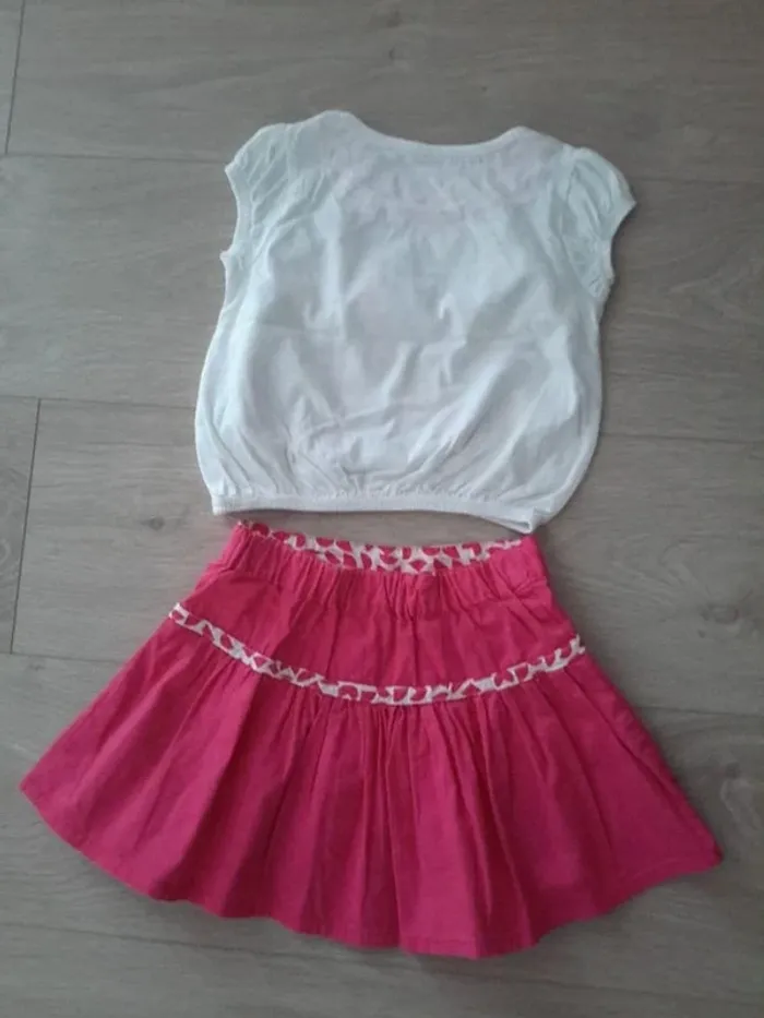 Ensemble tee shirt blanc jupe rose 3 ans - photo numéro 1