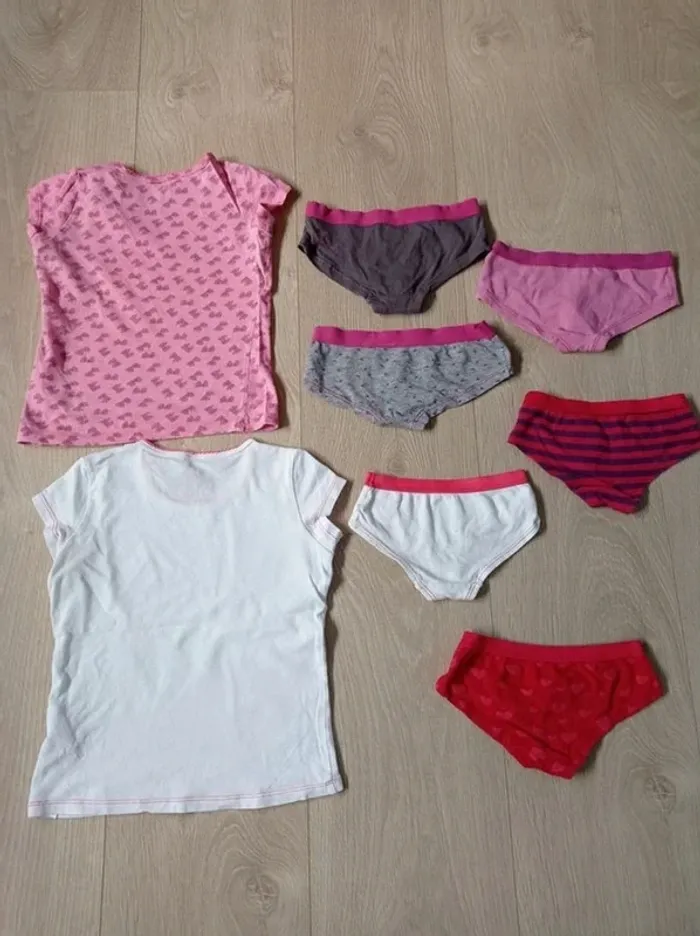 1 tee shirt blanc avec motif vache et 1 tee shirt rose avec motifs noeuds 6 culottes #lolamalo50fille3ans